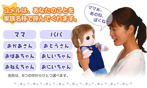 また8種類の中から選べる家族呼称で呼んでくれます(おじいちゃん、おばあちゃん、パパ、ママなど)