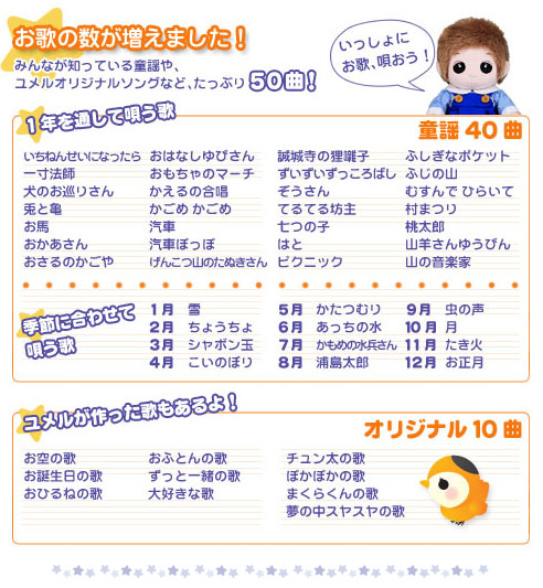 ○お歌たっぷり50曲、お話1,600通りお歌をたぁーっくさん覚えて